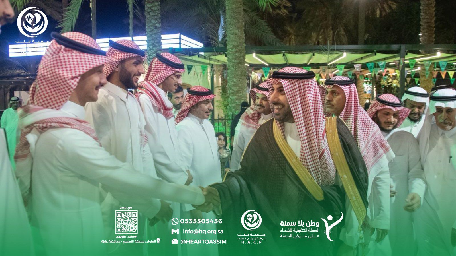 دشن سعادة محافظ عنيزة أ.سعد بن عبدالله السليم فعالية اليوم العالمي للقلب “لاتفوت نبضة” والتي اقامتها #جمعية_قلب وكان في استقباله حفظه الله سعادة مدير عام فرع وزارة الصحة بالقصيم بالانابة أ.حمد السويل و سعادة الرئيس التنفيذي للجمعية أ.محمد سالم الغشام وسعادة أ.بندر ماجد الحربي عضو مجلس إدارة الجمعية، واطلع سعادته على الأركان المقامة في الفعالية واثنى على جهود القائمين عليها ، كما قدم سعادته شكره لادارة الجمعية على جهودها ومساهماتها في خدمة المجتمع متمنين لها دوام التوفيق والنجاح كما قدمت ادارة الجمعية شكرها لسعادته على رعايته الكريمة ومشاركته التي كان لها الأثر الكبير في إنجاح هذا الحدث المميز والذي يجسد مدى اهتمامه ودعمه المتواصل وحرصه الدائم في دعم المبادرات الخيرية والأنشطة المجتمعية.